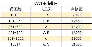 BSCI认证费用分为三个部分