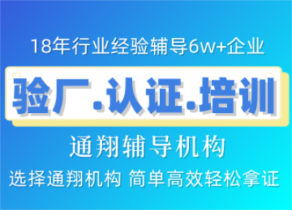 多年来,通翔顾问公司与各大认证机构合作密切,多次参与各种研讨会和培训班,并经常进行技术交流中国式企业与各种管量体系有效结合模式,保证 经通翔公司辅导的企业都能建立起“简单、明确、实用、高效”的科学管理体系,一次性通过认证机 构的审核,为企业零风险打开国际市场,协助企业成为真正面向未来的可持续发展企业。