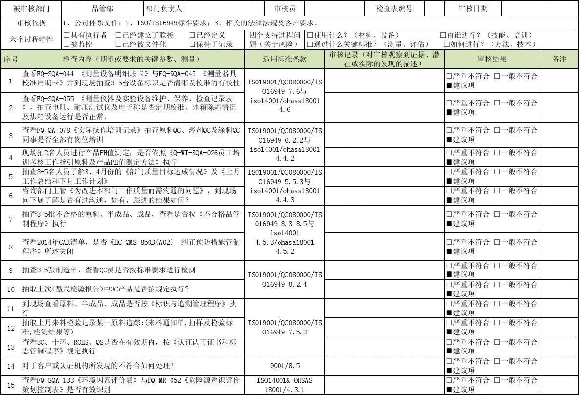 qc080000有害物质管理体系内审检查表