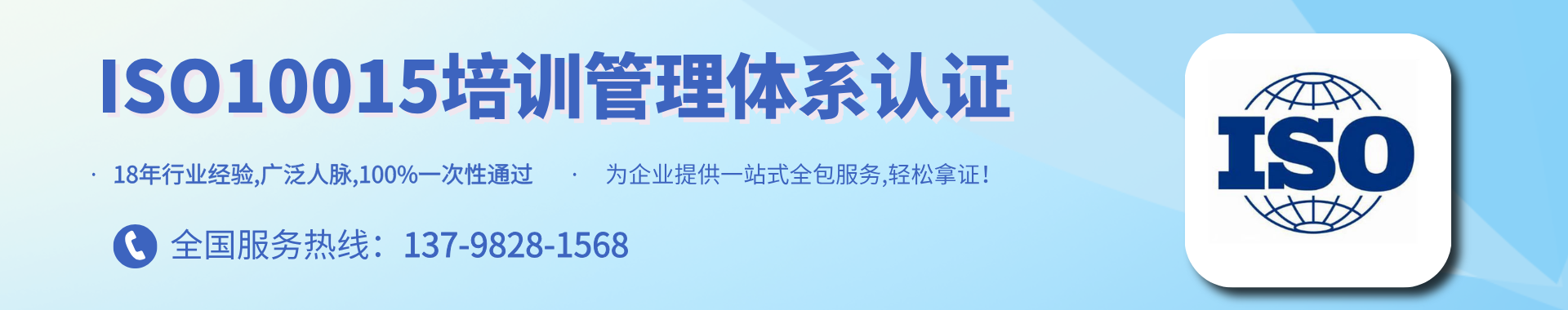 ISO10015代表培训实施质量的国际标准认证,它是由国际标准ISO9000系列中,对组织内人力资源培训规划与执行的品管规范标准,用以确保培训的投资可以和现在或未来的企业营运目标链接,并确保培训的实施可以创造正向的投资报酬率。