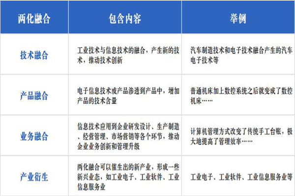 信息化与工业化主要在技术、产品、业务、产业四个方面进行融合。也就是说,两化融合认证包括技术融合、产品融合、业务融合、产业衍生四个方面。